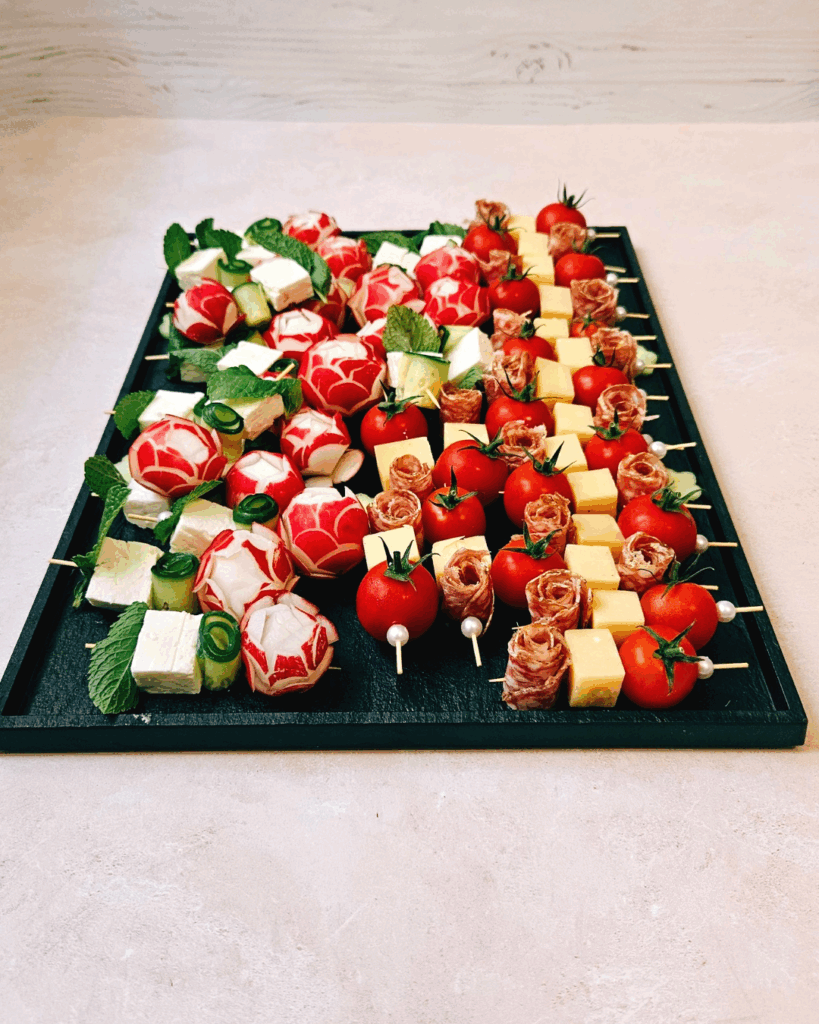 Des produits raffinés, locaux, de saison choisis avec soin. Nos produits étant frais, il est possible que certains d’entre eux varient en fonction des arrivages. Soyez assurés que nous sélectionnons toujours les meilleures alternatives pour préserver l’esthétique et la qualité de vos plateaux