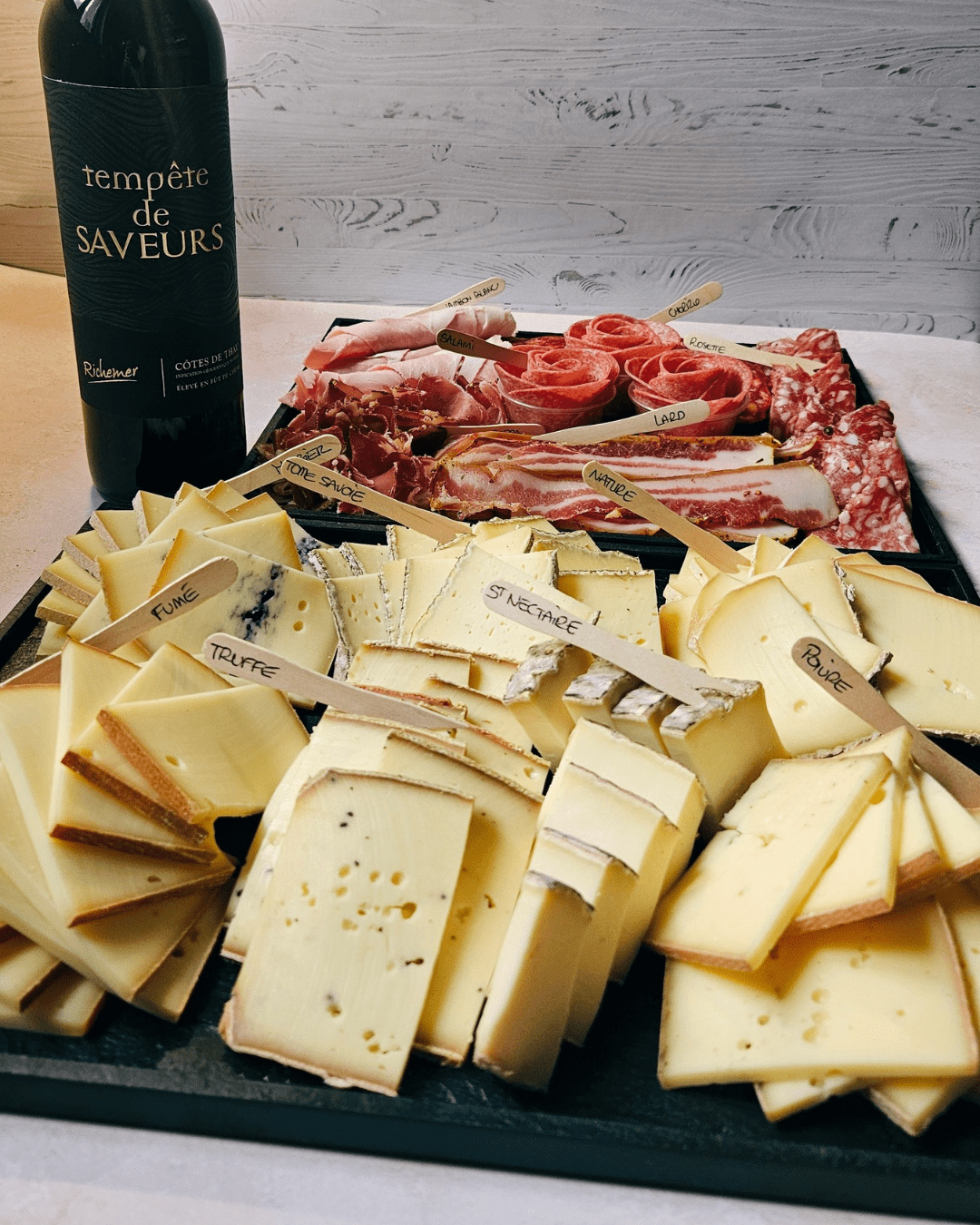 Des plateaux élégants, généreux et prêts à partager, composés de fromages affinés et de charcuteries sélectionnées.
